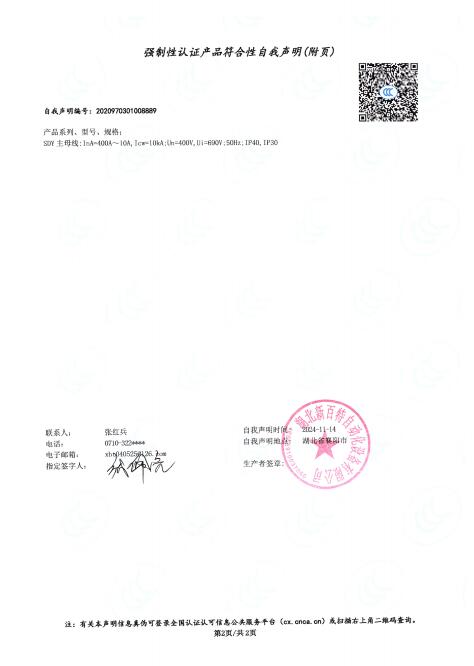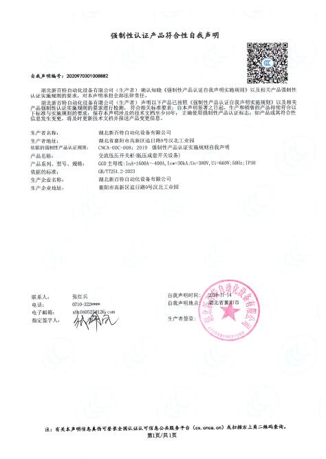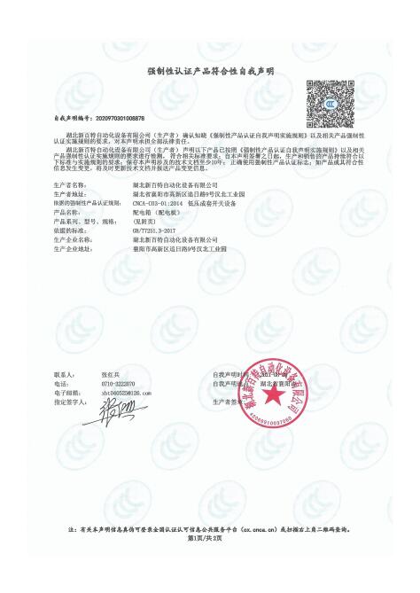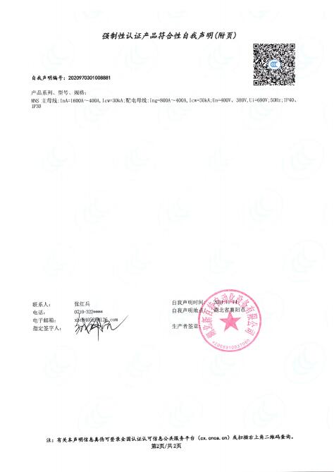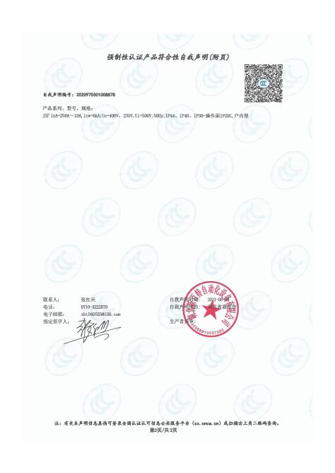 产品自我声明证书